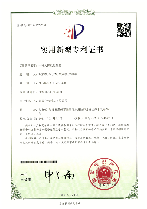 270[專(zhuān)利證書(shū)]一種瓦楞紙包裝盒(實(shí)用)