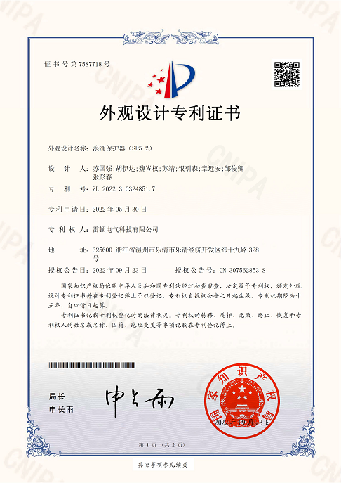 606[專利證書]浪涌保護(hù)器(SP5-2)(外觀)