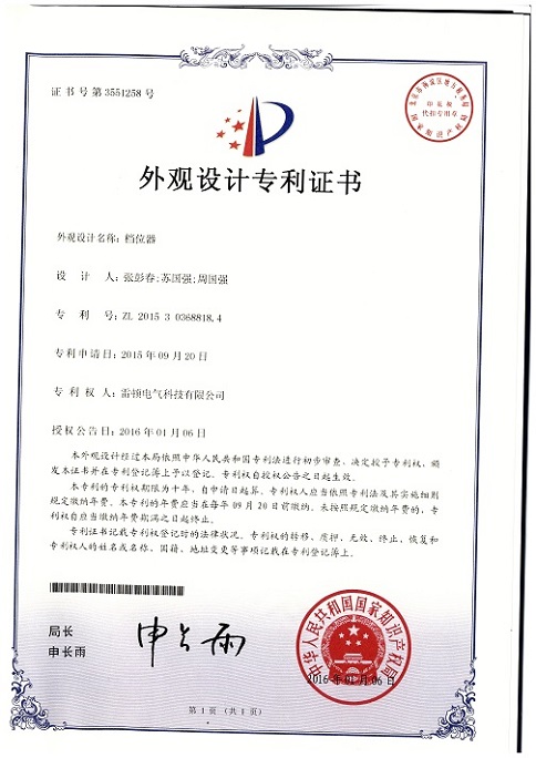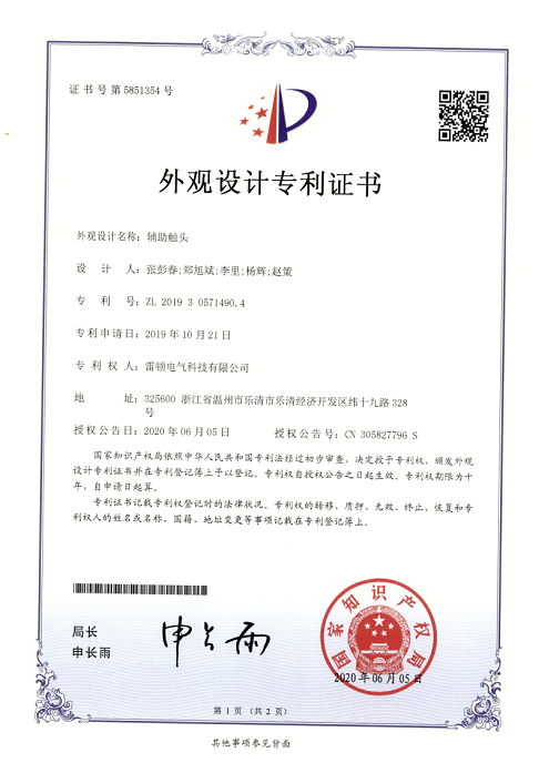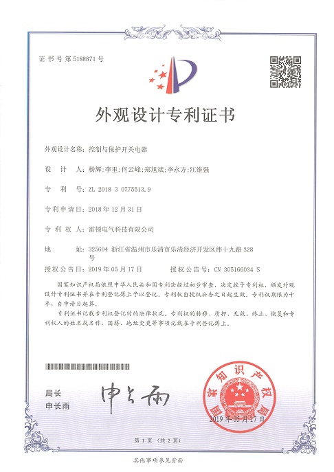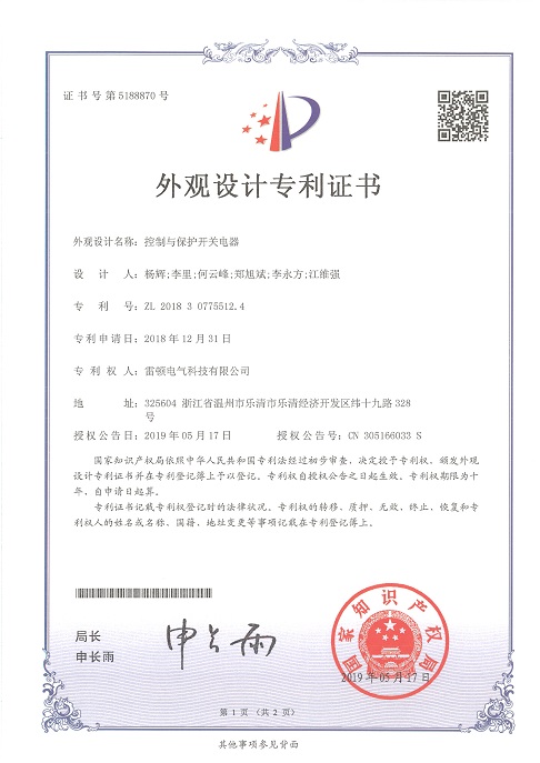 604[專利證書]控制與保護(hù)開關(guān)電器(外觀)