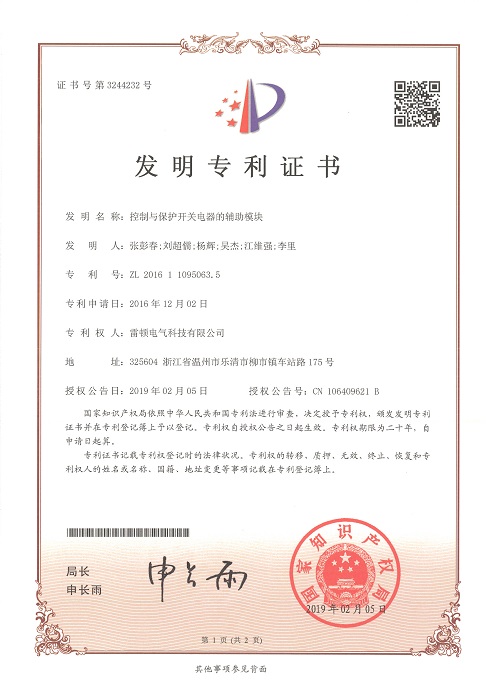 009[專利證書(shū)]控制與保護(hù)開(kāi)關(guān)的輔助模塊(發(fā)明)