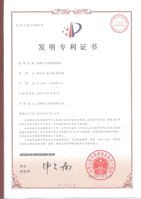 005[專利證書(shū)]轉(zhuǎn)換開(kāi)關(guān)的聯(lián)鎖結(jié)構(gòu)(發(fā)明)