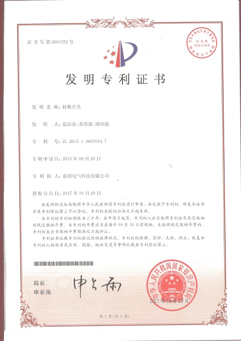 004[專利證書(shū)]轉(zhuǎn)換開(kāi)關(guān)(發(fā)明)