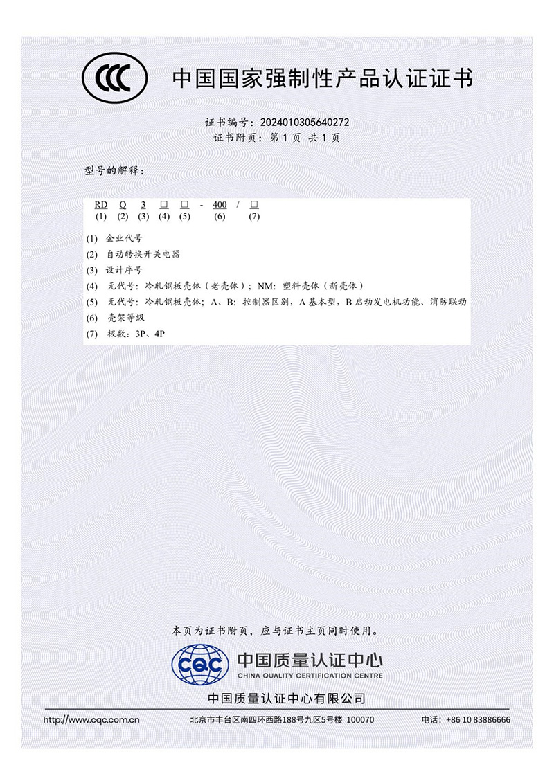 RDQ3-400/□、RDQ3NM□-400/□自動(dòng)轉(zhuǎn)換開(kāi)關(guān)電器3C證書(shū)-2【CCC】