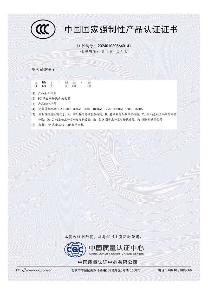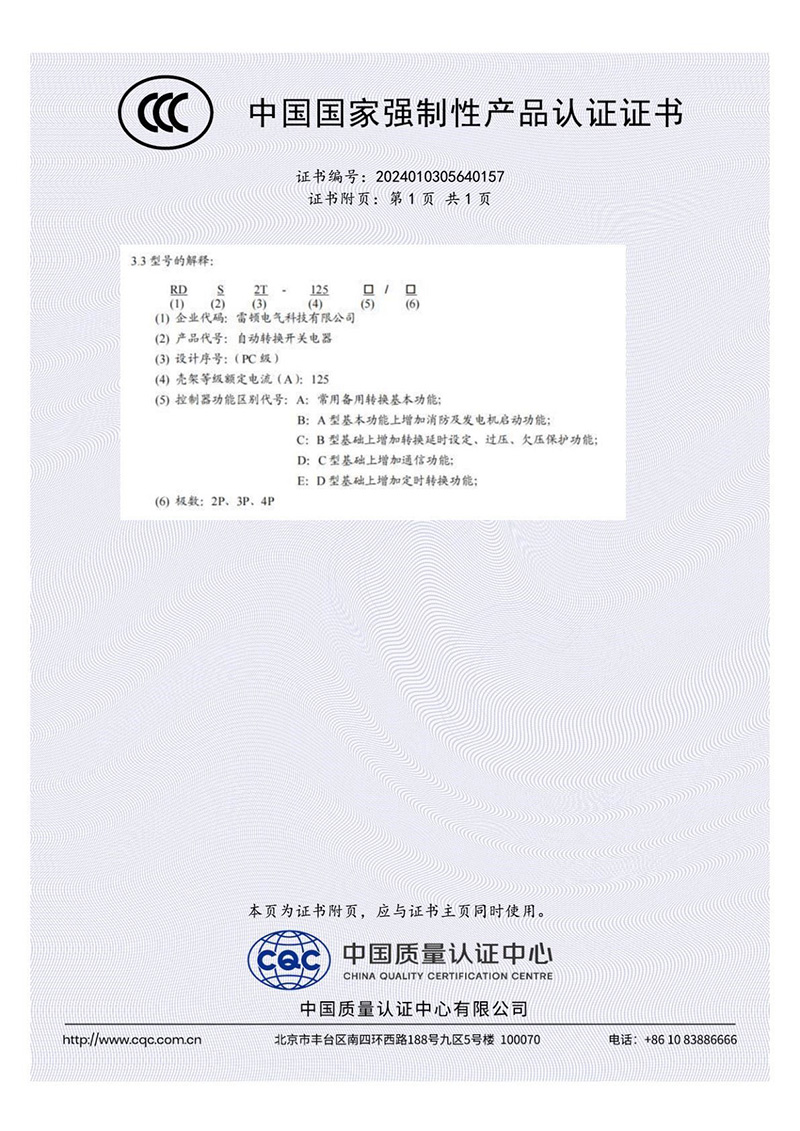 RDS2T-125□/□自動(dòng)轉(zhuǎn)換開關(guān)電器3C證書-2【CCC】