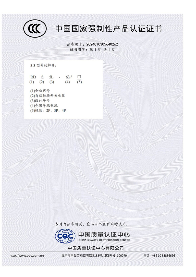RDS5L-63/□自動(dòng)轉(zhuǎn)換開關(guān)電器3C證書-2【CCC】
