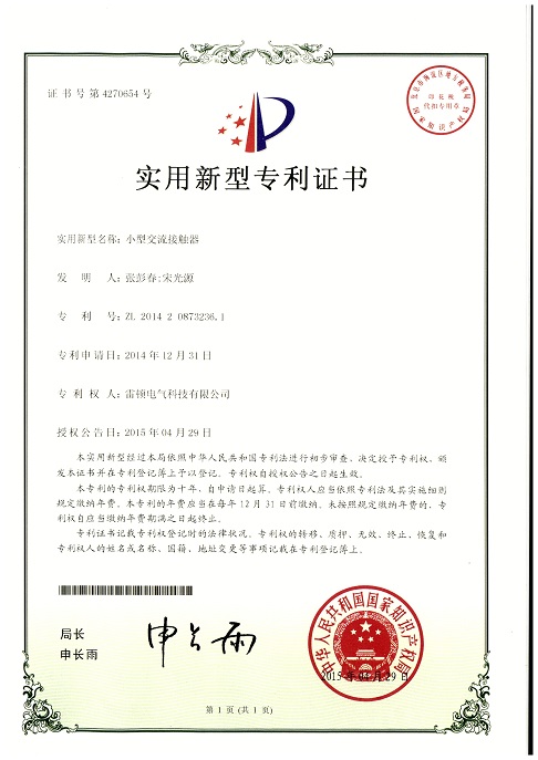 200[專利證書(shū)]小型交流接觸器(實(shí)用)