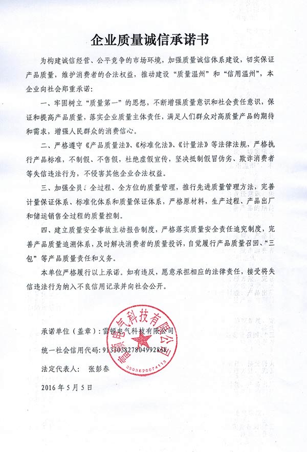 企業(yè)質(zhì)量誠(chéng)信承諾書(shū)