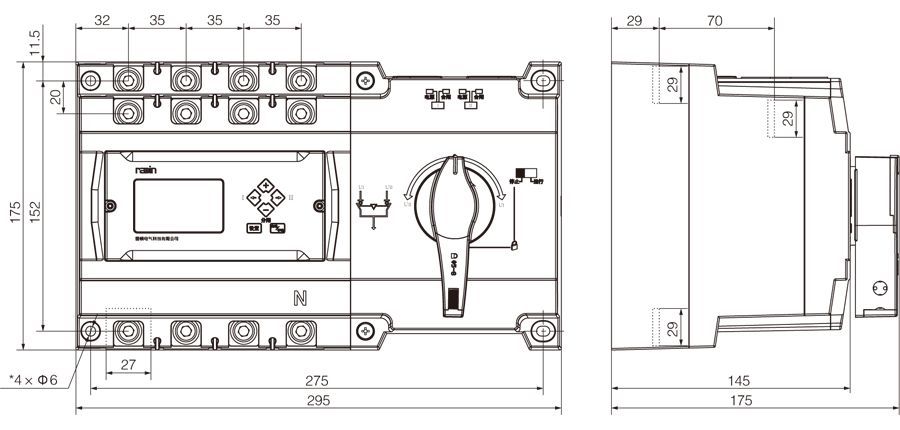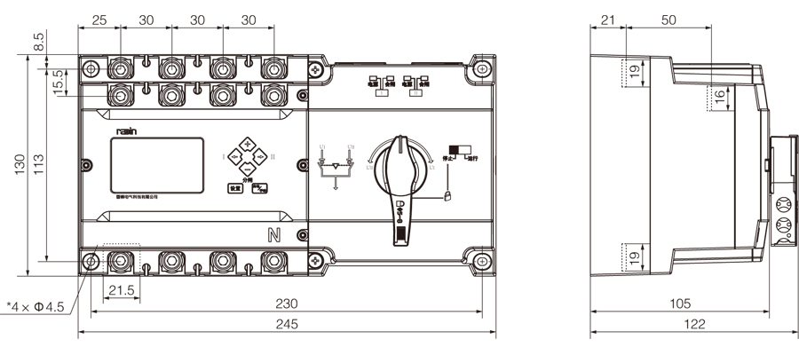 ● RDS3-630(三極、四極外形和安裝尺寸相同)