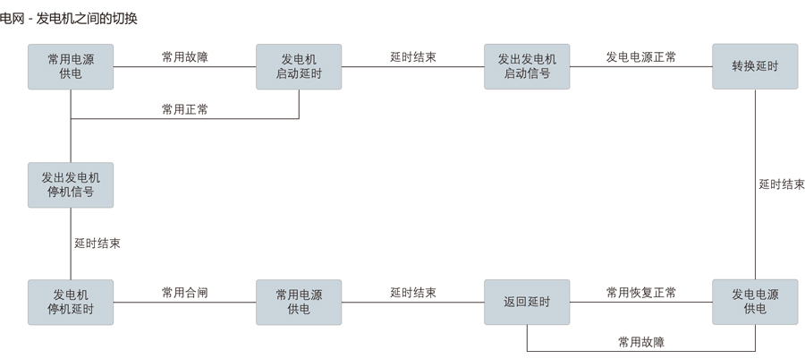 發(fā)電機啟動延時可以避免由于短時電源中斷而啟動發(fā)電機組。常用電源不可用時啟動此延時,當電源不可用時間超過延時間控制器發(fā)出發(fā)電機啟動命令。