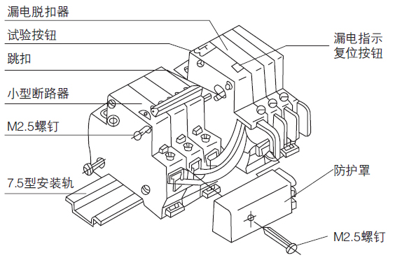DZ47LE 系列漏電脫扣器,是由高導(dǎo)磁材料制成的零序電流互感器,電子組件板及高阻燃塑料外殼組成,具有性能穩(wěn)定,靈敏度高,體積小等特點,DZ47 斷路器和漏電脫扣器按制造廠說明書在現(xiàn)場拼裝組合成的漏電斷路器額定電流乘以0.8 降容系數(shù)( 下降一個電流等級) 它與DZ47 拼裝成漏電斷路器后,用于交流50Hz 或60Hz,額定電壓230/400V,額定電流100A 以下的電路中作為漏電和設(shè)備漏電保護之用。