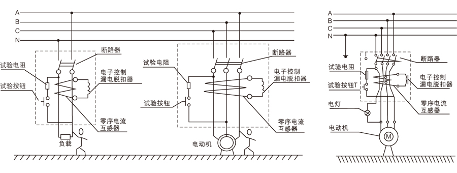 ● 當(dāng)被保護(hù)電路中有漏電或人身觸電時(shí),只要剩余電流達(dá)到整定動(dòng)作電流值,零序互感器的二次繞組的輸出信號(hào)就觸發(fā)可控硅導(dǎo)通,并通過(guò)漏電脫扣器使漏電斷路器動(dòng)作,從而切斷電源起到漏電和觸電保護(hù)作用。